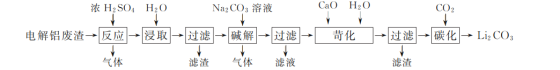 (1)含鋰電解鋁廢渣與濃硫酸在200~400 ℃條件下反應2 h,加水浸取后過濾,得到的濾渣主要成分是________(填化學式)。